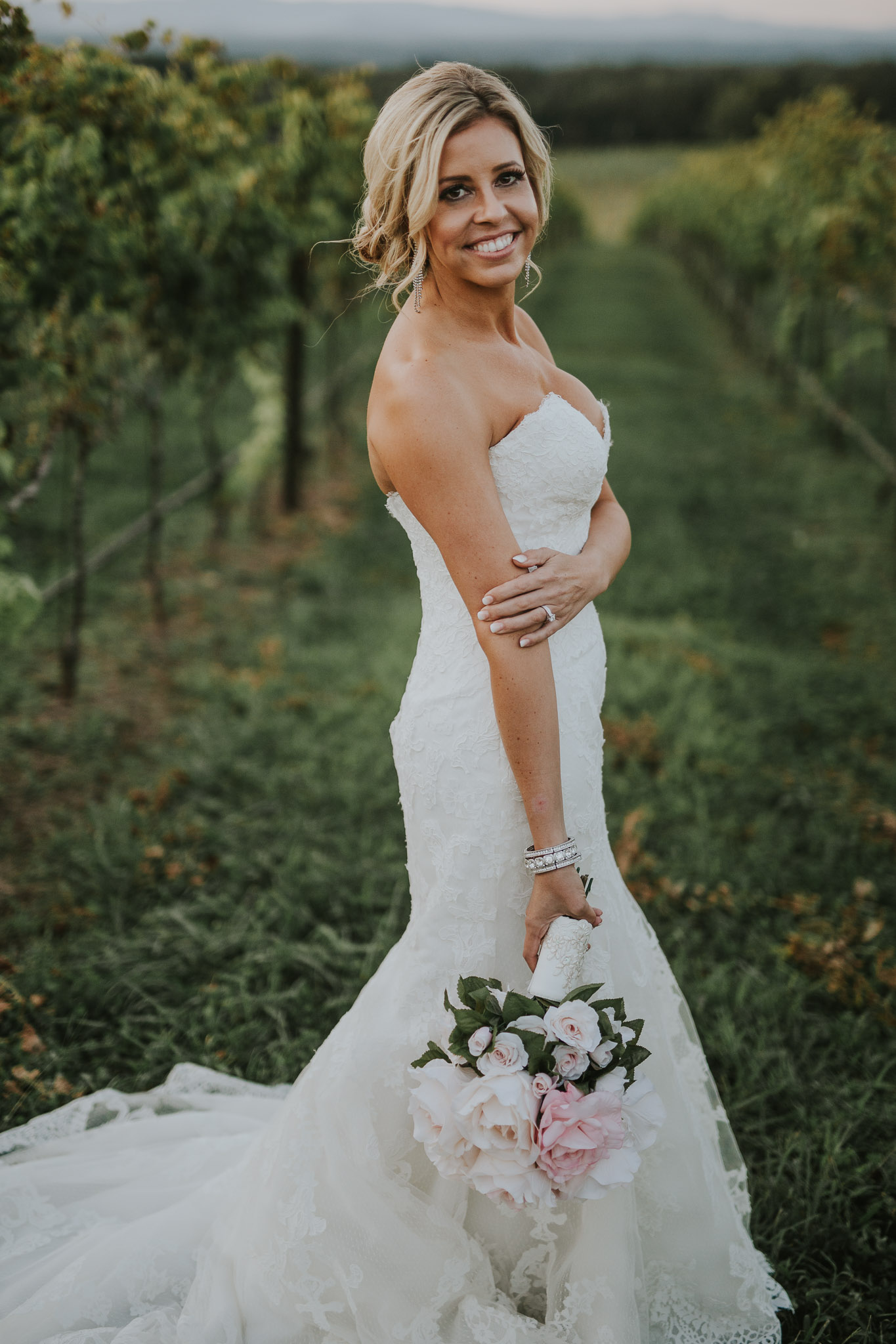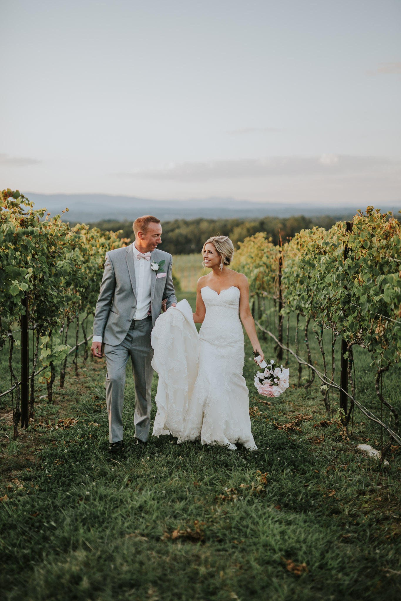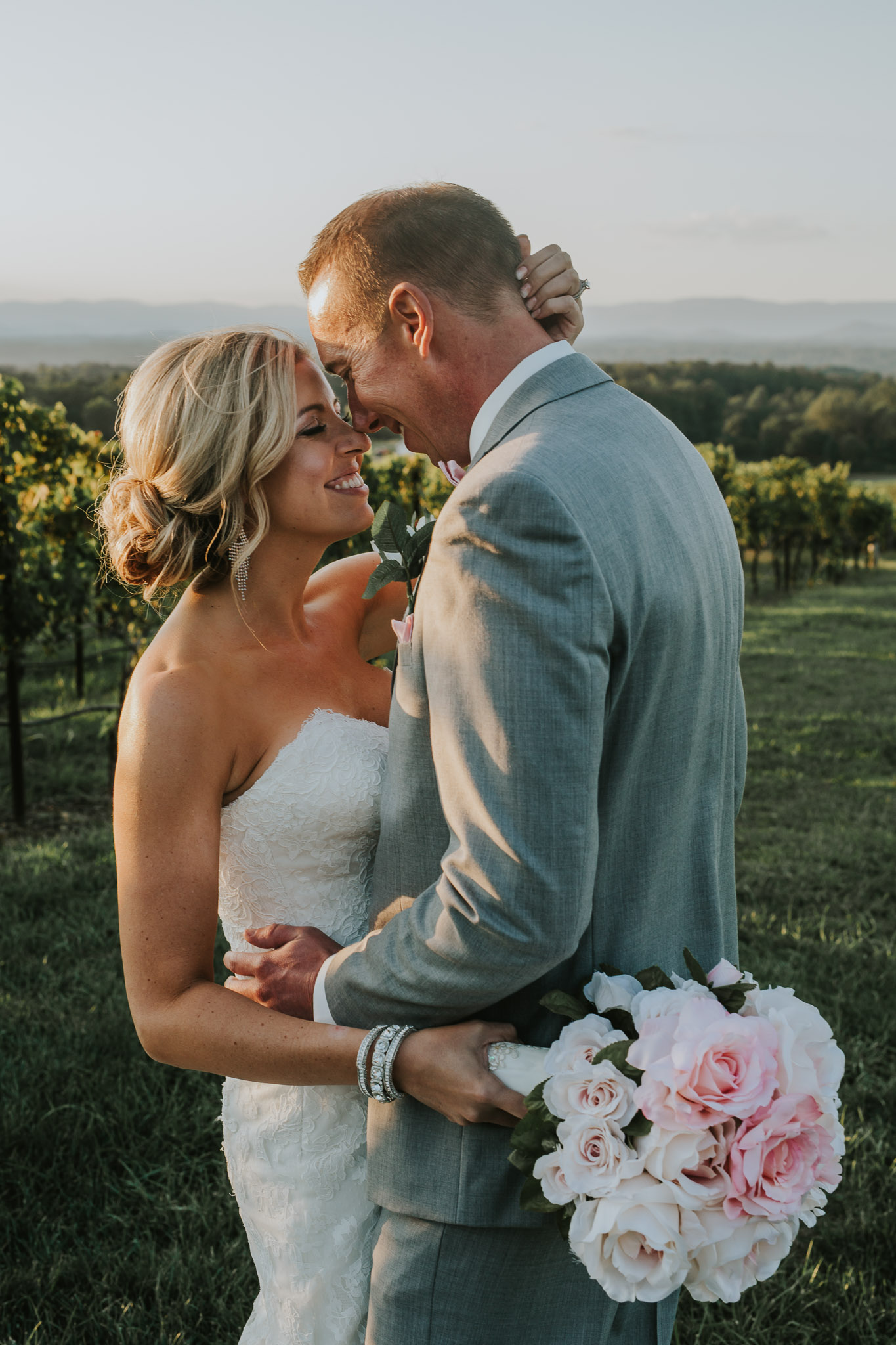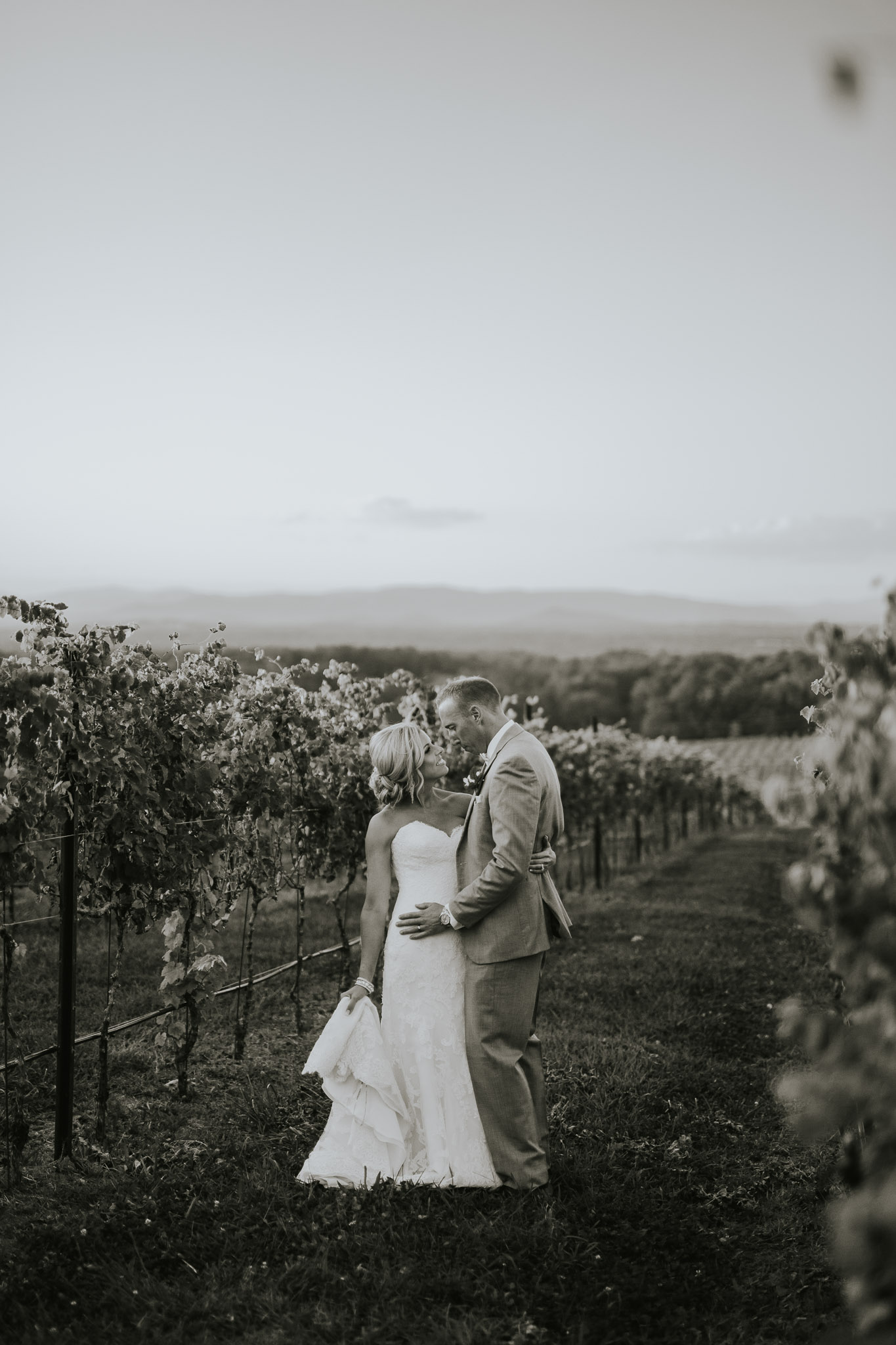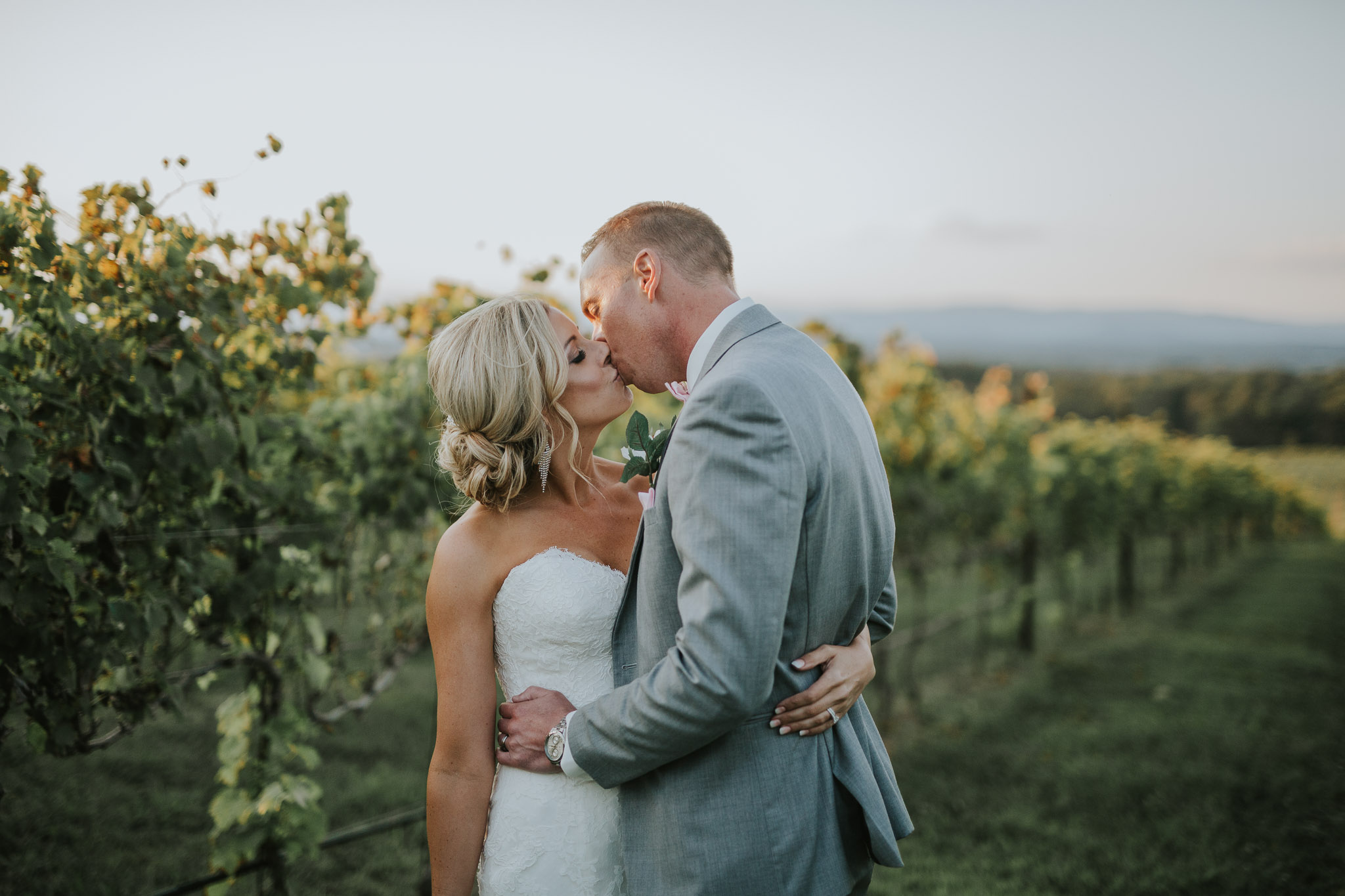 I couldn’t believe my eyes when we pulled up to the Raffaldini Vineyards located in Ronda, NC where the ceremony and reception were being held. If you ever have the chance to go out there, even for a glass of wine, I would highly recommend it! Love was in the air and so was a soothing cool breeze. I knew they were a perfect match because of how many kisses were exchanged throughout the evening. They ended the night under the stars and twinkle lights dancing to their favorite songs. It truly was a magical day. Be sure to check it out for yourself!