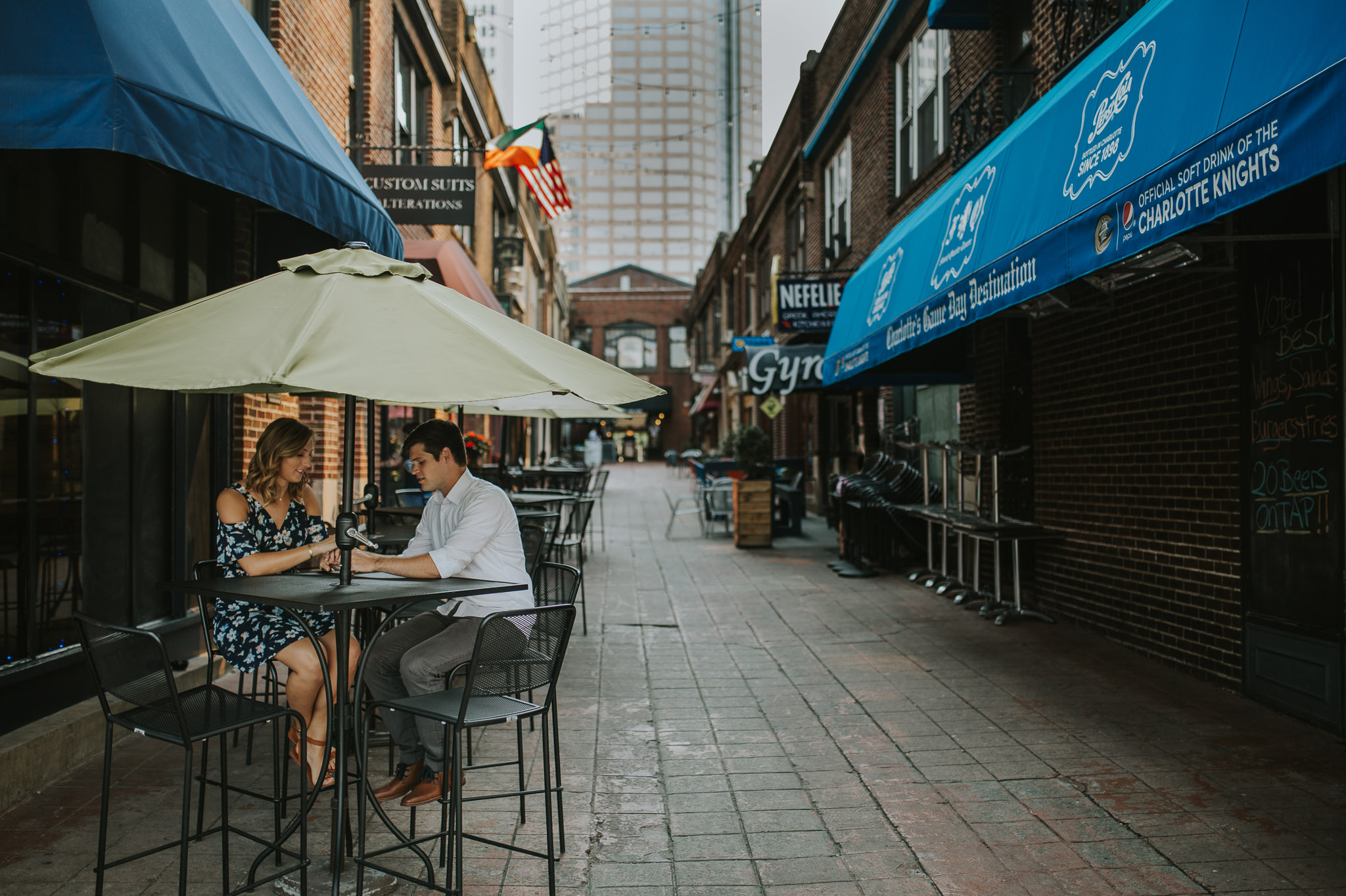 So this month has been crazy! We have been visiting amazing places with friends and family, and enjoying gorgeous views in Alaska! We can’t wait to share more about that trip! Fo now, we are so excited to share these two love birds! Joe and Jordan are some of the kindest people we have met. They are so mellow and we really enjoy that about them. We started out our shoot with them in uptown Charlotte at the French Quarter and then made our way to the beautiful McGill Rose Garden! If you haven’t found your dream wedding venue in Charlotte, then you might check there, because that is where magic is made! It’s right over in NODA and is a hidden treasure!