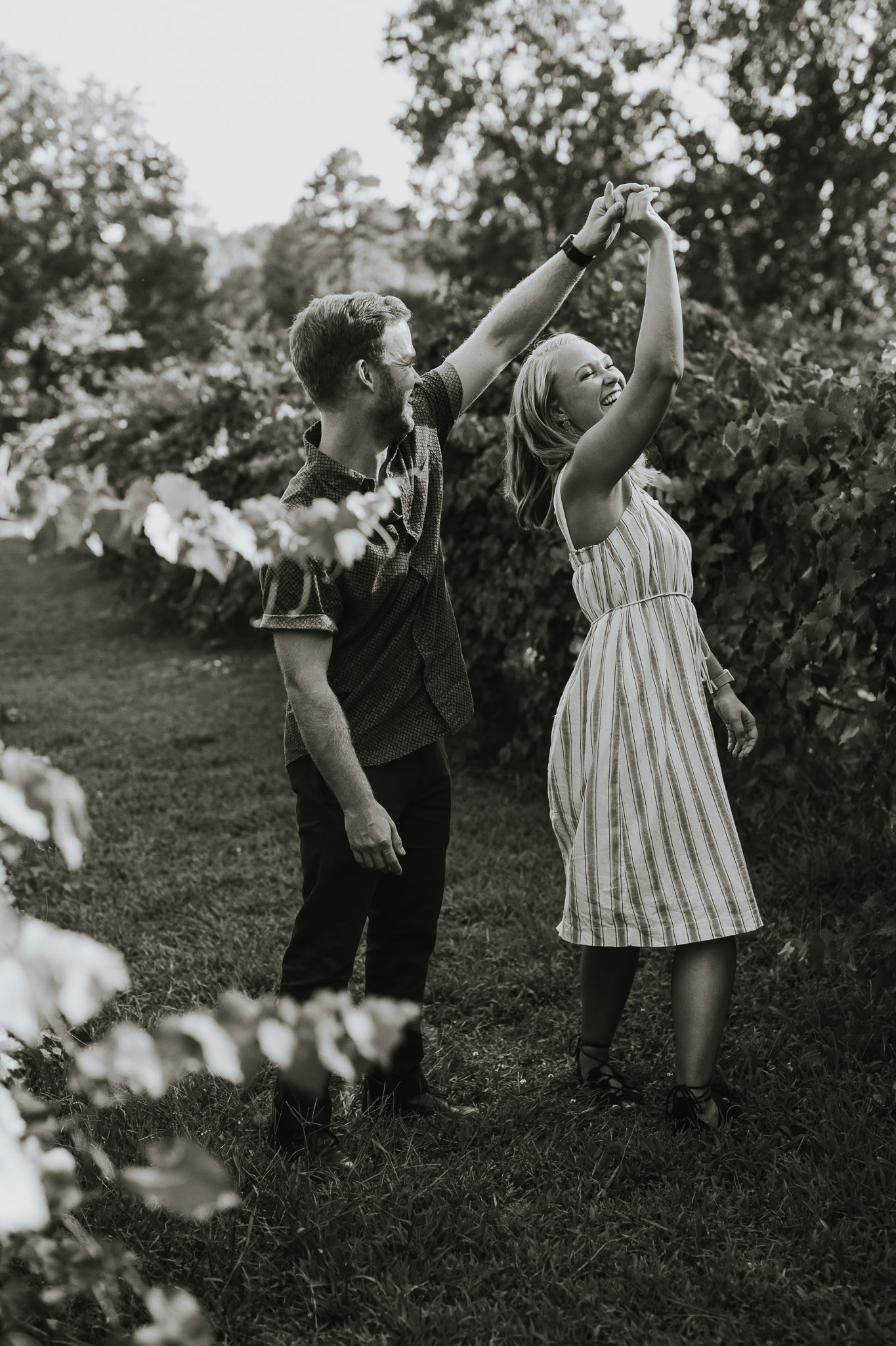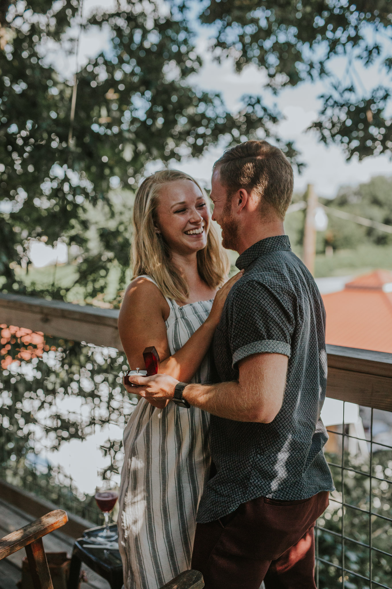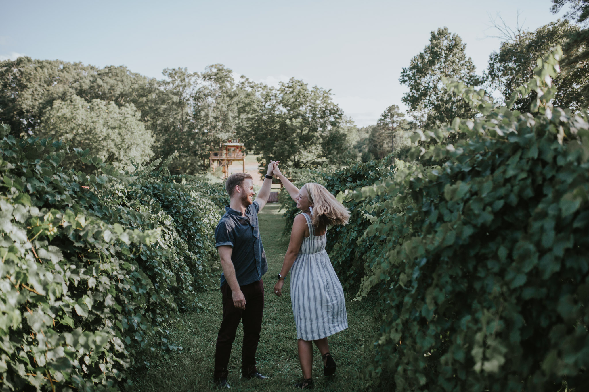 When we started this company last October we never thought that we were going to have awesome experiences like hiding in a treehouse for a surprise engagement shoot! Life has all sorts of surprises though! Blake proposed to his beautiful fiancĂ© Shelby over a glass of wine and a tub of hummus, in a treehouse overlooking a gorgeous vineyard! It doesn’t really get much better than that! We absolutely love proposal shoots because they come with incredibly raw emotions every single time! After the proposal we gave them some space to soak it all in while we drank some wine slushies, and then came back together for a little mini engagement session out in the vineyard. Since we had such a great time with them, they invited us to stay and swing dance at the vineyard and meet their families. Who knew vineyards had swing dance lessons with wine involved?! Drop us a comment and let us know what you think about this adorable proposal!