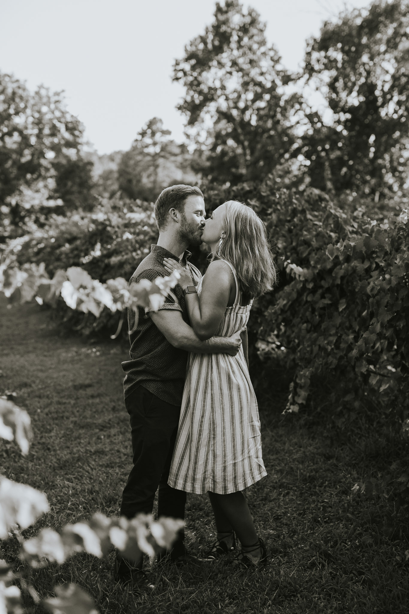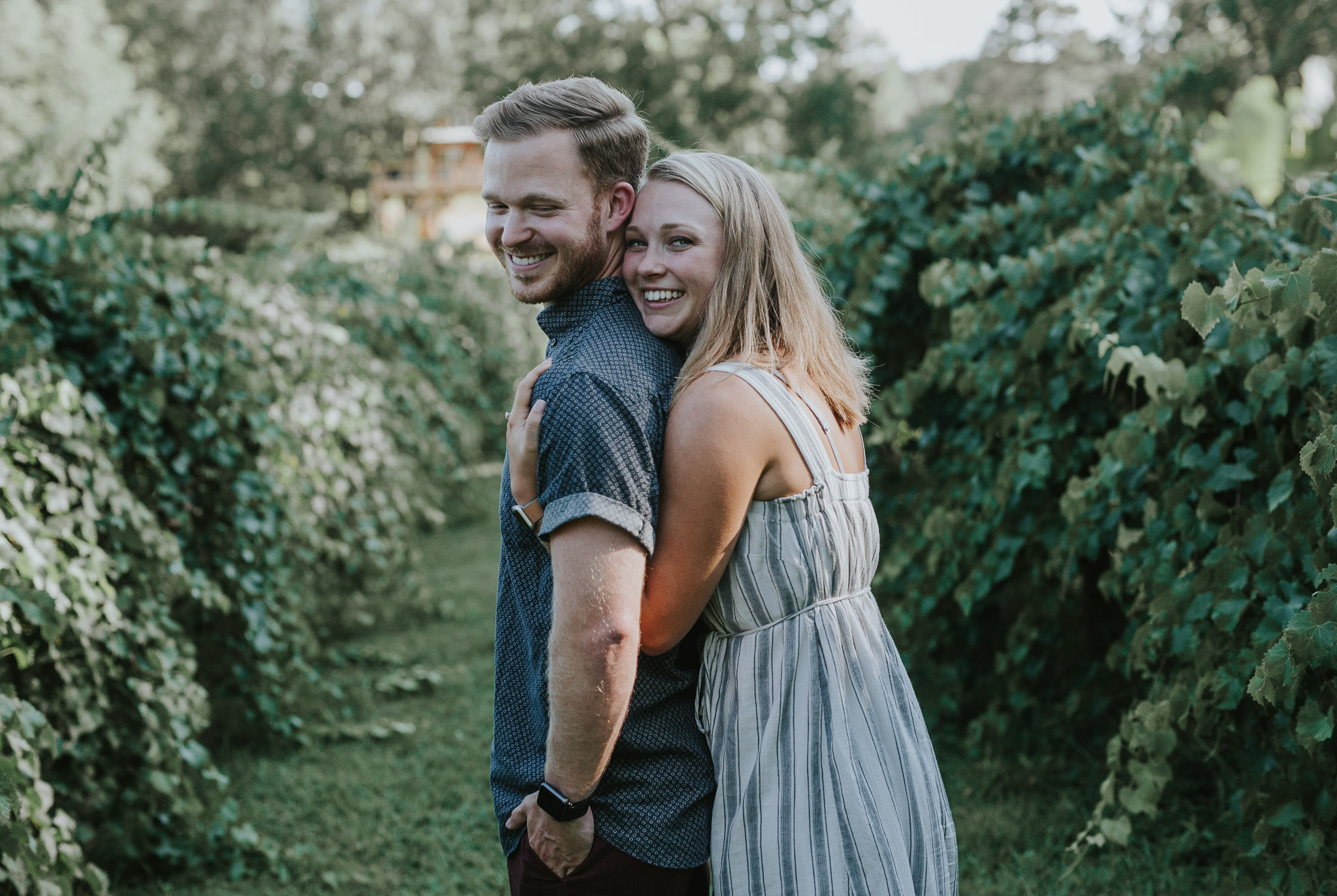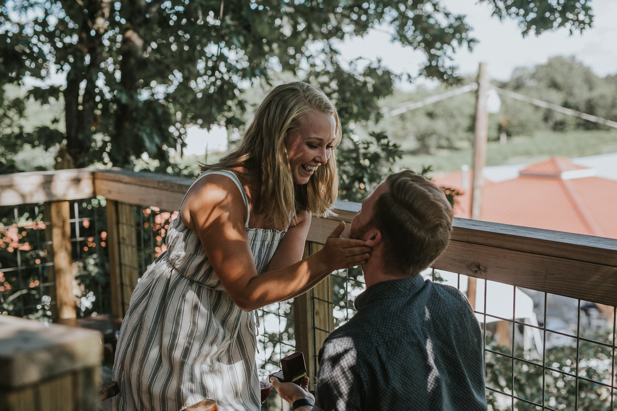 When we started this company last October we never thought that we were going to have awesome experiences like hiding in a treehouse for a surprise engagement shoot! Life has all sorts of surprises though! Blake proposed to his beautiful fiancĂ© Shelby over a glass of wine and a tub of hummus, in a treehouse overlooking a gorgeous vineyard! It doesn’t really get much better than that! We absolutely love proposal shoots because they come with incredibly raw emotions every single time! After the proposal we gave them some space to soak it all in while we drank some wine slushies, and then came back together for a little mini engagement session out in the vineyard. Since we had such a great time with them, they invited us to stay and swing dance at the vineyard and meet their families. Who knew vineyards had swing dance lessons with wine involved?! Drop us a comment and let us know what you think about this adorable proposal!